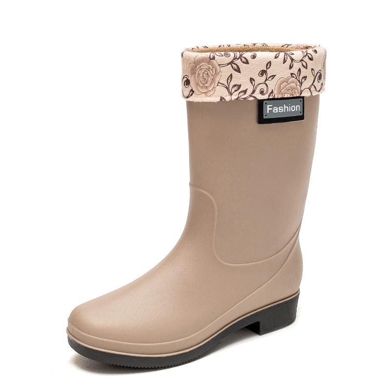 Middle Drum Warm Fashion OUTSIDE WEARING WATERPROOF SHOES RAIN SHOES RAIN BOOTS FEMALE WINTER ADULTS WORK RUBBER SHOES ANTI SLIP SET SHOES THICKENED