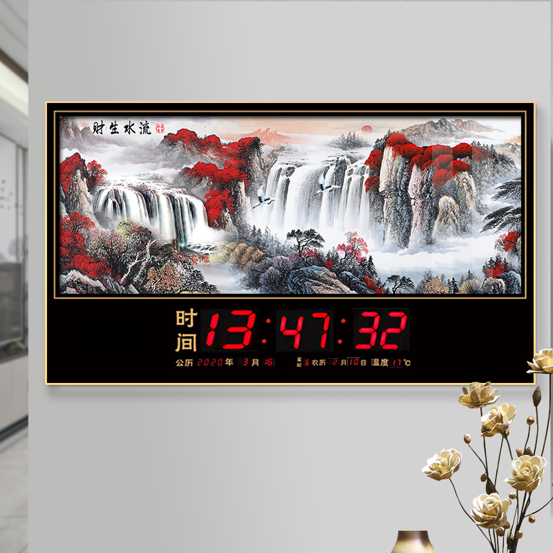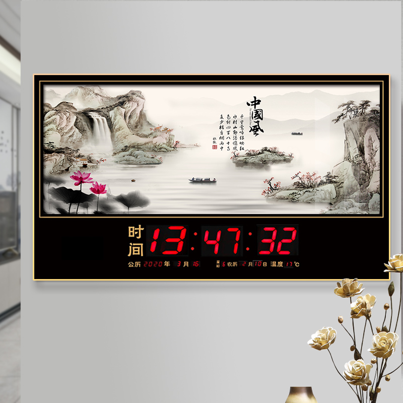 Chinese perpetual lunar calendar electronic bell 2022 new landscape painting wall-mounted clock living room hanging wall home digital hanging clock