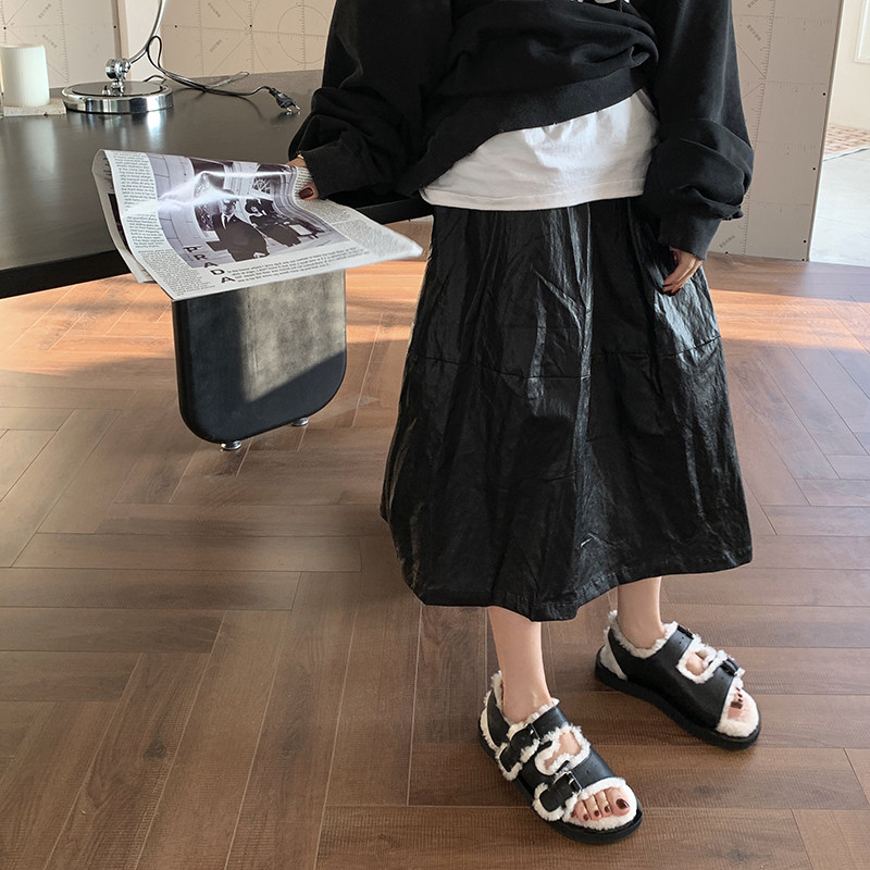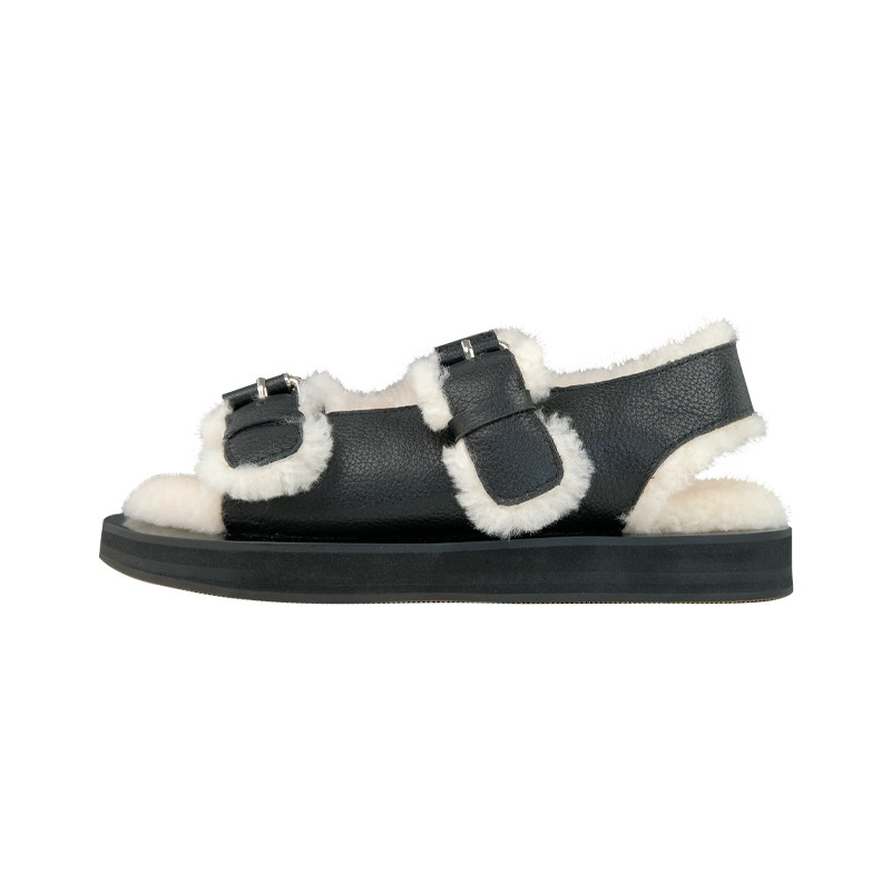 Net red explosive leather fur integrated thick bottom fur shoes women autumn winter outwear 2021 new flat-bottomed warm and velvety sandals