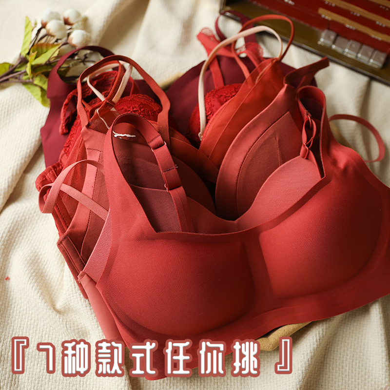 Big red underwear women's birth year festive wedding bride gathered no steel ring sexy bra skin-friendly soft bra