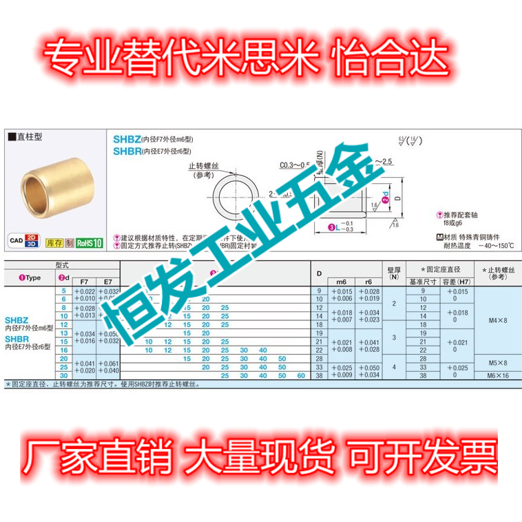 Alternative Mithrice SHBR5 6 8-8 10 12-25 Sliding bearing radial bearing without oil bush