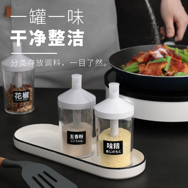 Salt MSG Seasoned box Home Kitchen Supplies Spoon Cover Integrated Sauce Bottle Sauce Bottle Jar Combined Suit Salt Jars