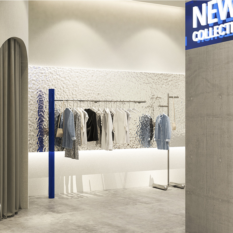 Clothing store display rack acrylic display rack fashion Nordic men's and women's stainless steel brushed wall hanging shelf