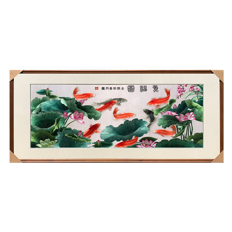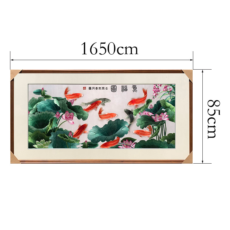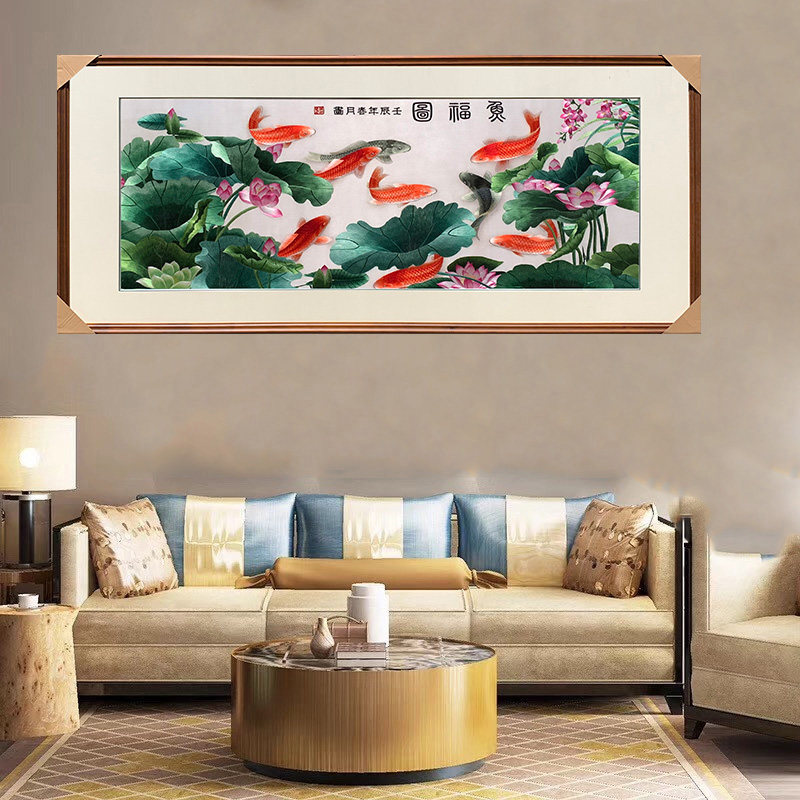 Suzhou Embroidery Pure Handmade Su Embroidered Finished Product Hung Painting Living Room Decoration Painting Nine Fish Lotus Flower Fish Foto Sofa Background Wall