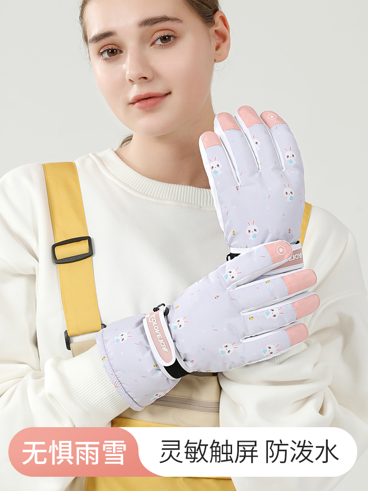 Ski gloves autumn and winter women's electric car cycling couple plus velvet thickened to keep warm in winter waterproof and windproof riding