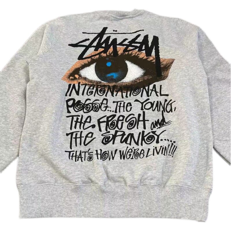 (Domestic spot) Snow country sauce stussy men's eye letter pullover plus velvet sweater