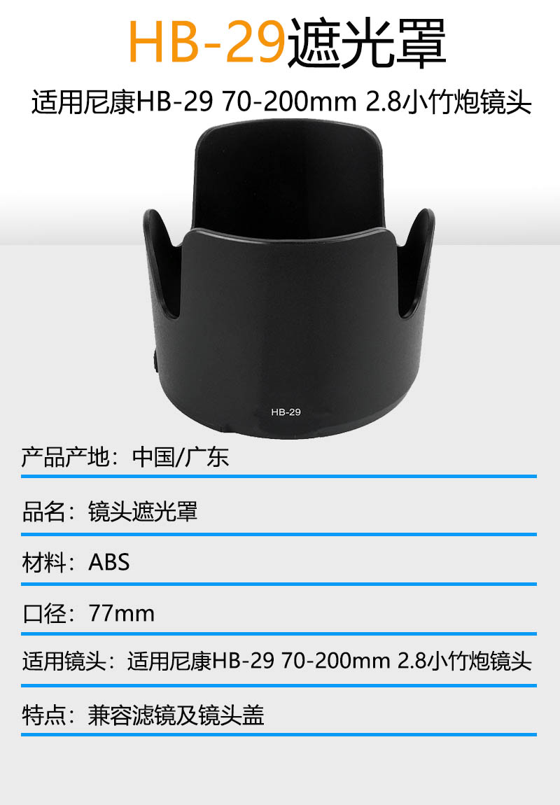 Applicable Nikon shade HB-29 70-200mm 2 8 small bamboo gun lens bayonet frosted thickened