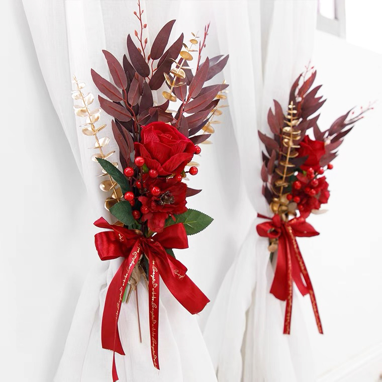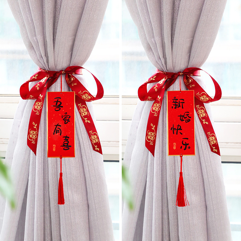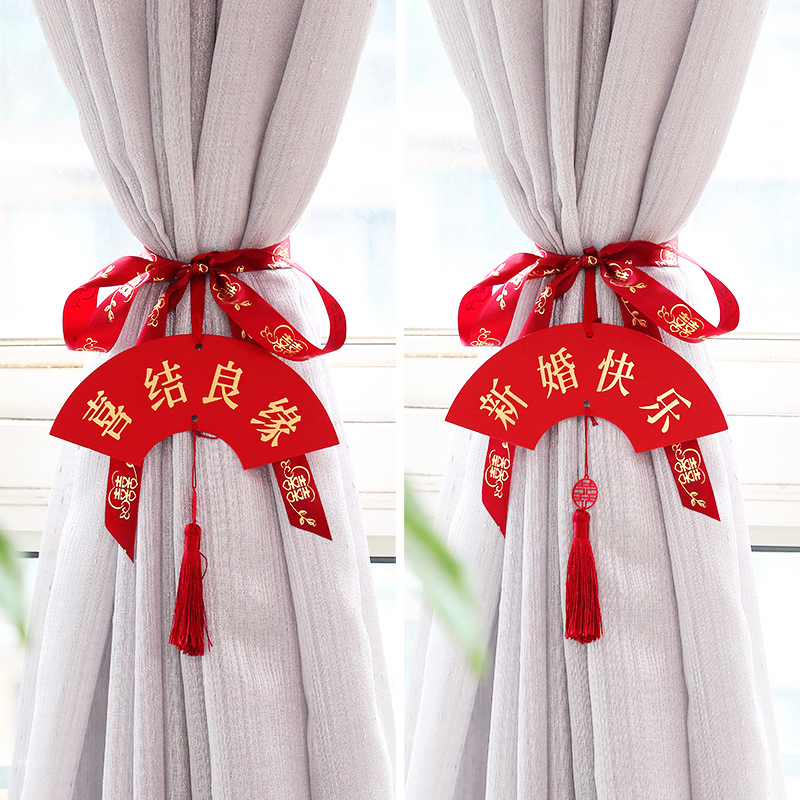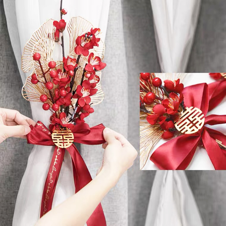 Wedding pull flower decoration creative net red wedding room layout set wedding new house bedroom living room curtains tied rope pendant