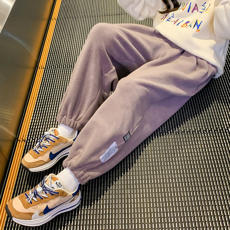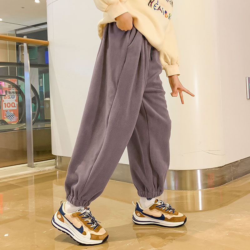 Next Music girls' polar fleece plus velvet pants, big children's autumn and winter clothes, loose sports pants, children's leggings