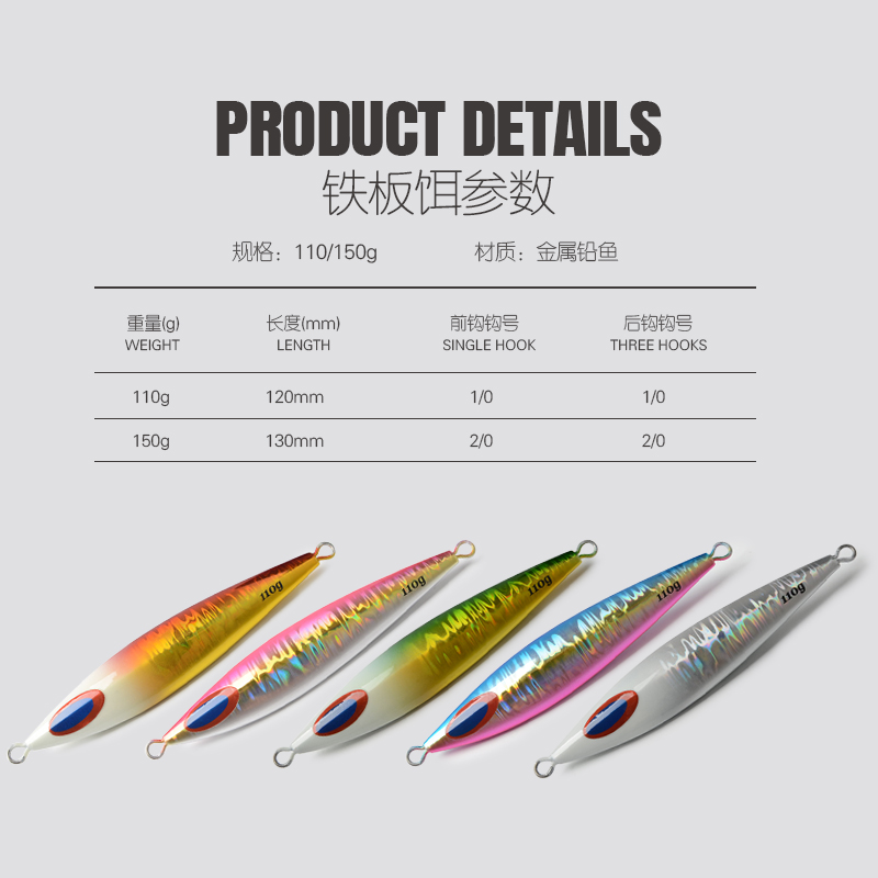 Slowly wafting down large iron board butterfly Lua fake deep sea ship fishing night-light tuna big head cod black head red fish
