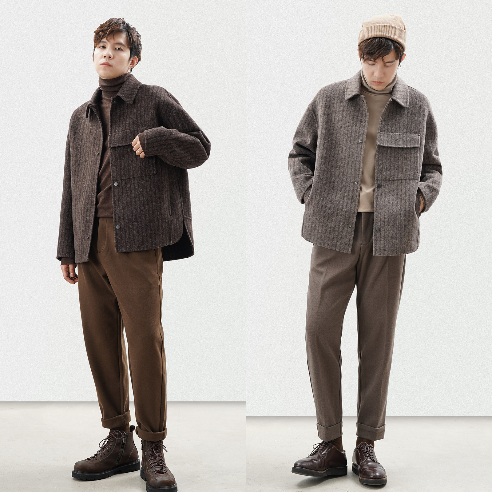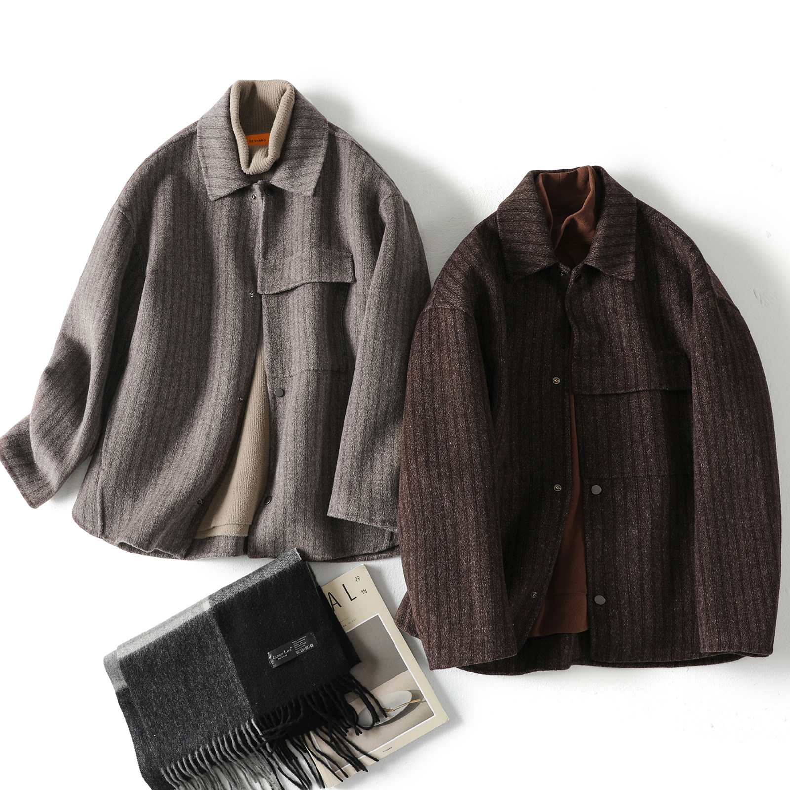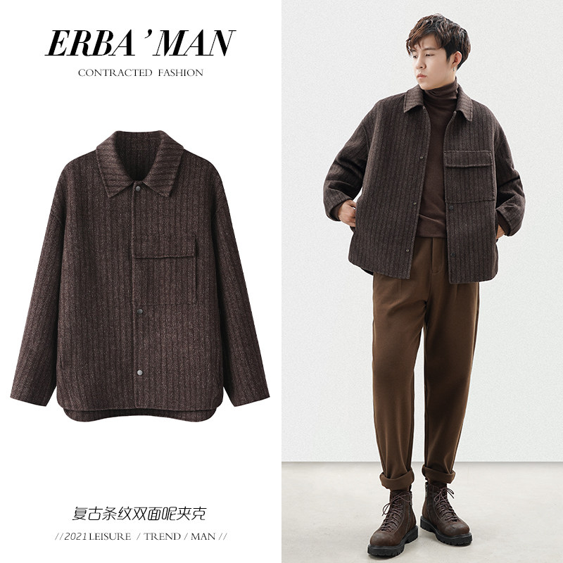 Renaissance Strip Double-sided Short Coat Men Wool Down Shoulder-Shoulder Leisure Jacket with a Top Cover