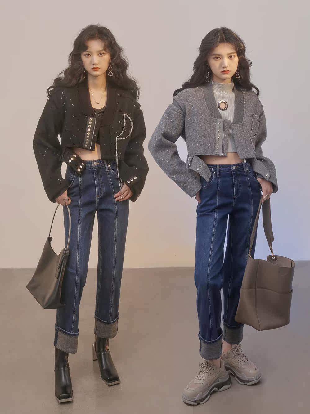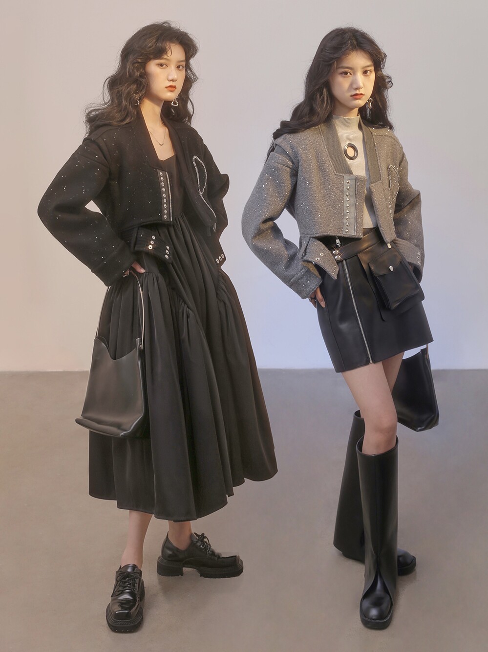 Sequined Wool Light Gray Sequined Wool Black