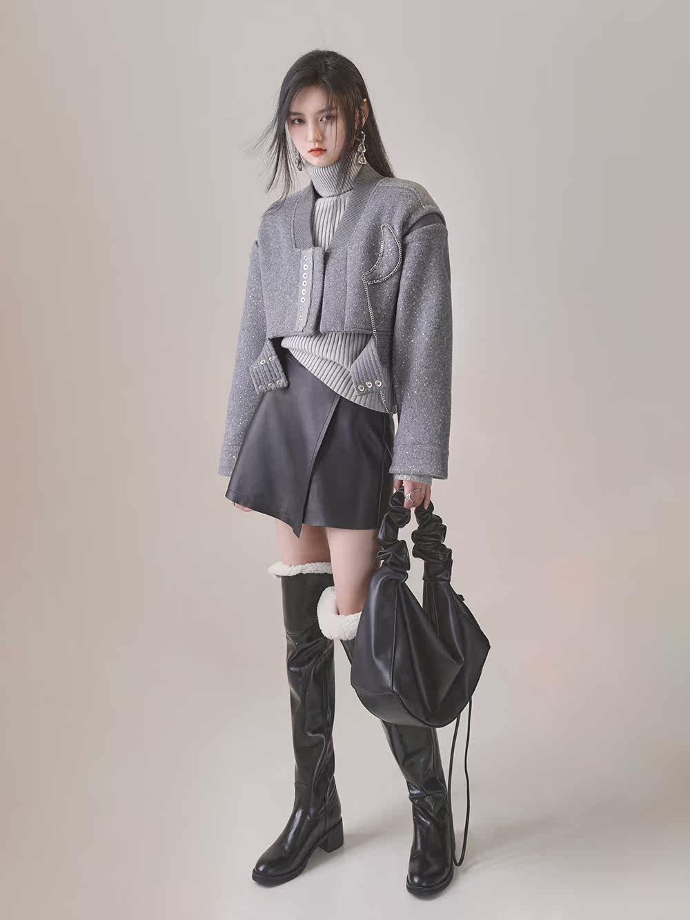 Sequined wool light gray