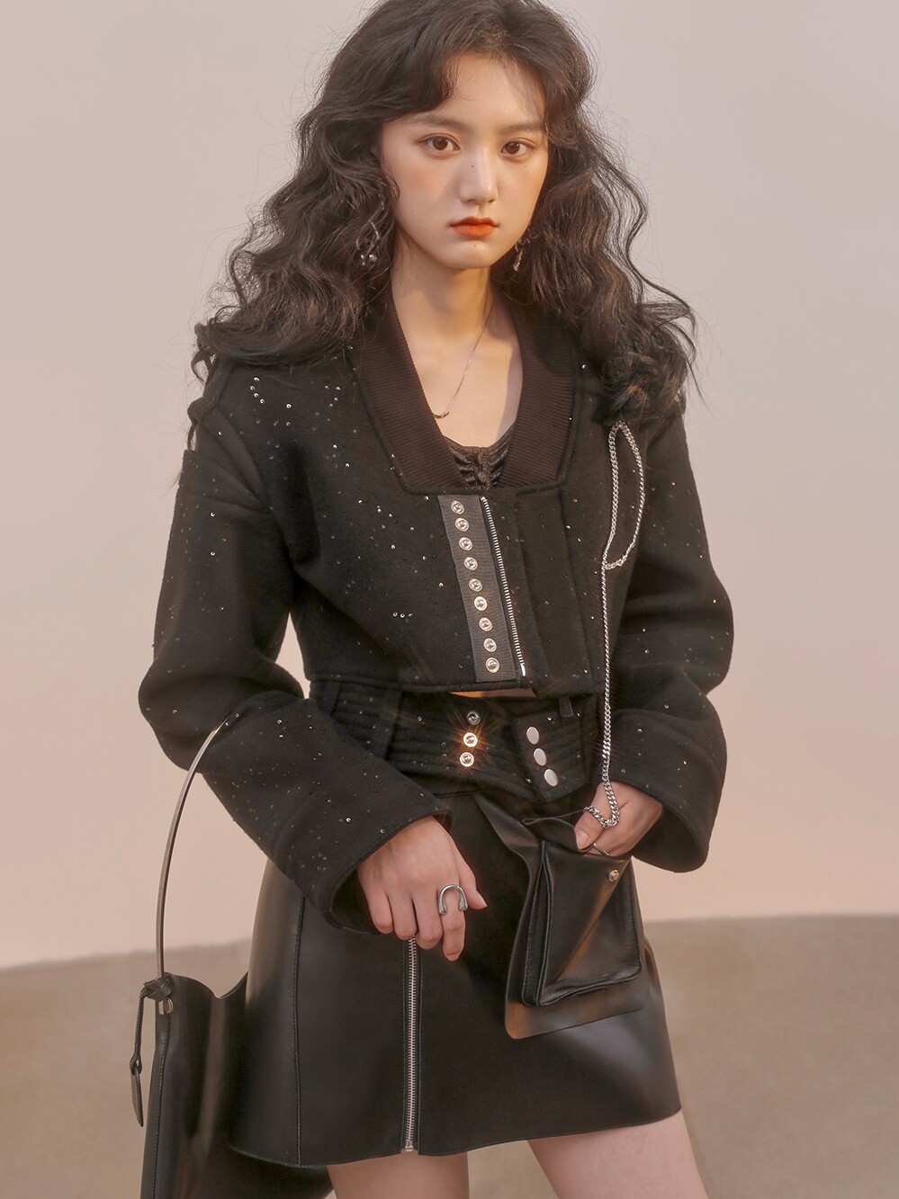 MXU Luna Battlesuit New Japanese Imported Luxurious Sequin Wool Retro Punk Design Sense Coat Women Winter