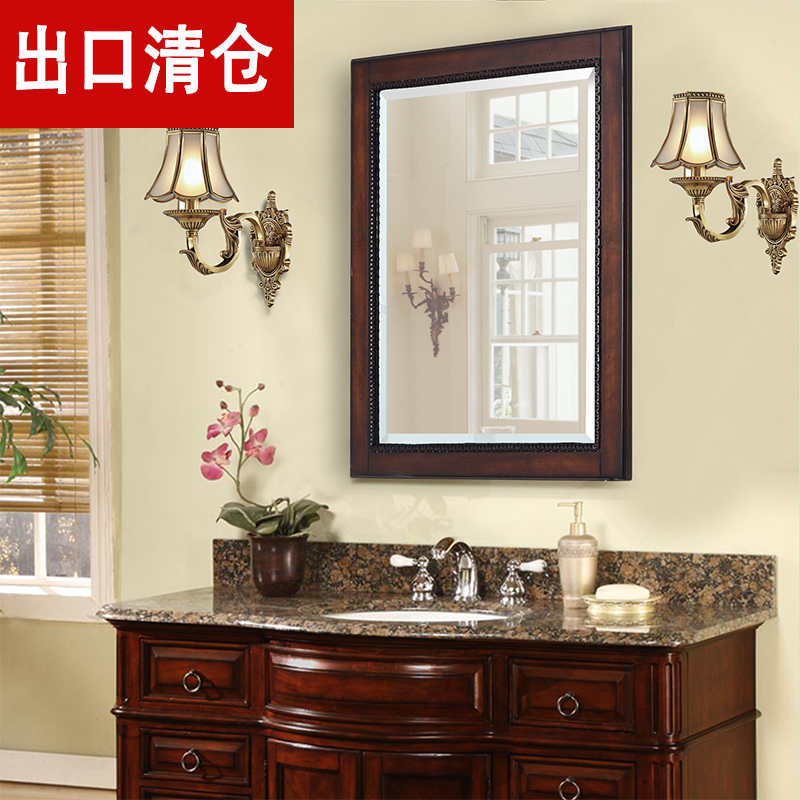 All-solid wood dressing mirror log makeup mirror Bathroom hanging mirror square mirror retro-making old designer furniture