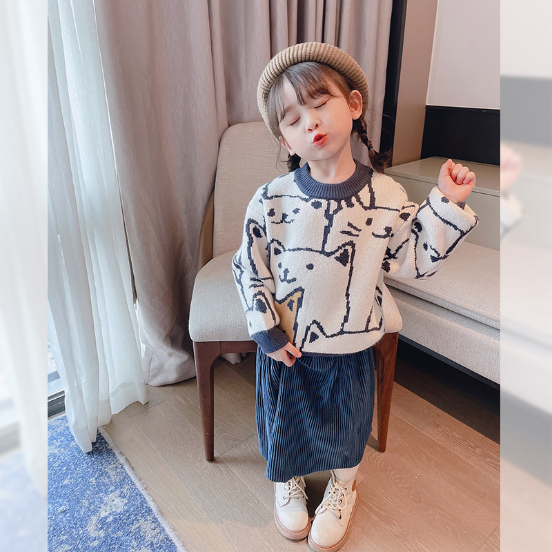 OKAIDI French blouses children knit clothes girl sweaters 2021 autumn winter new baby polo sweaters