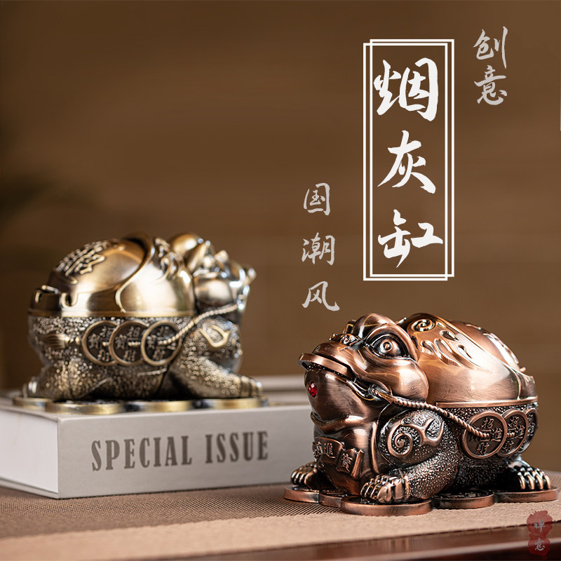 National tide golden toad creative ashtray anti-flying ash home living room office coffee table decoration with lid anti-smoking smell