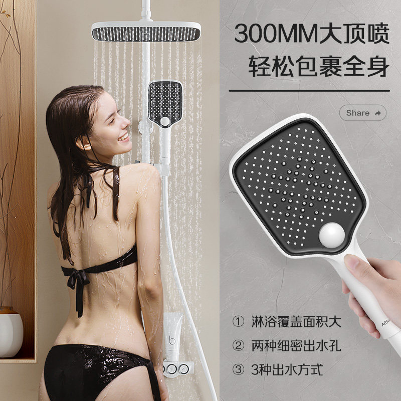 (moonlight white) Three-function thermostatic 12-inch giant curtain shower