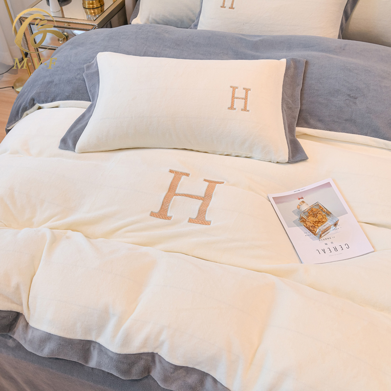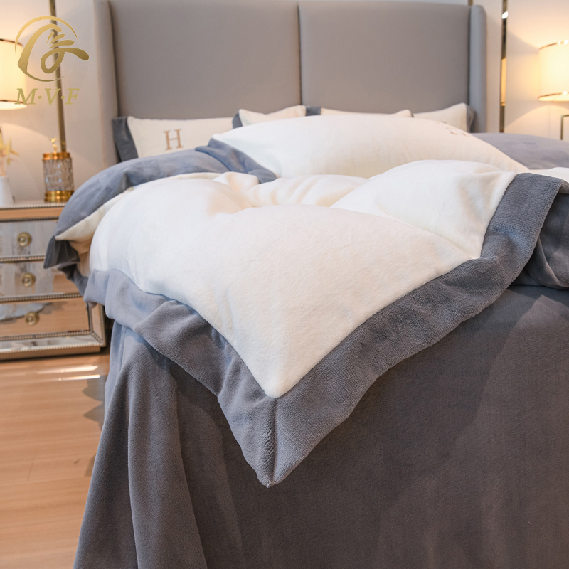 Winter milk velvet bedding four-piece set coral velvet plus velvet bed sheet quilt cover flannel light luxury bed three-piece set