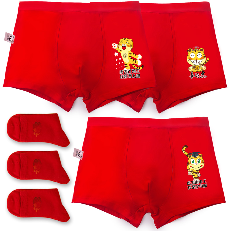 Children's Ben Year Great Red Underpants Boy girl 13 Boy girl 12 The girl 12 year old Tiger Year Pure Cotton Shorts