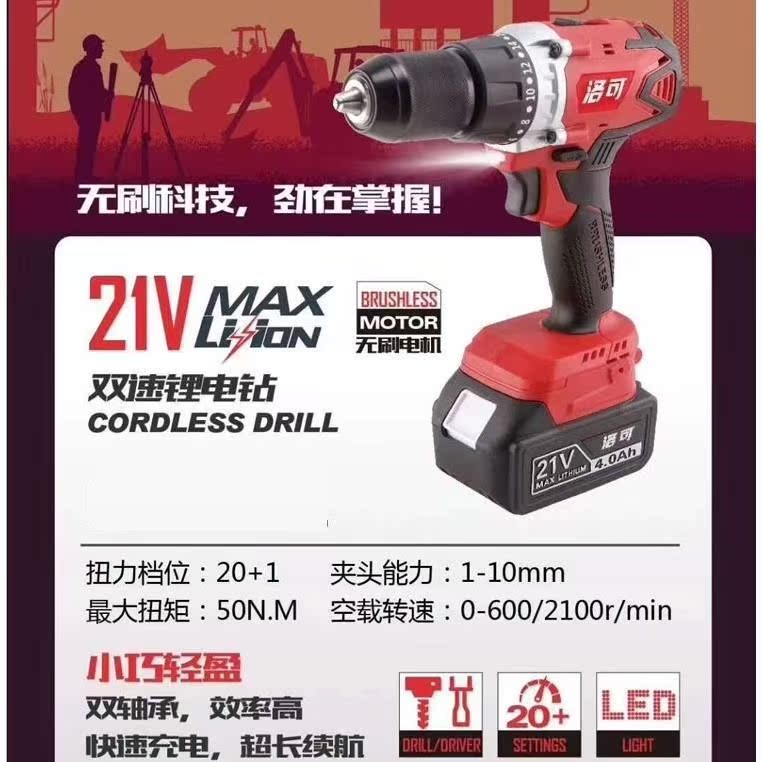 Rocke 21V lithium - ion drilling battery - type industrial multi - function electric drill knife fast - charging light ride