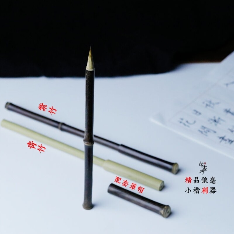Invitation special pen boutique Xuan pen bamboo pole with pen cap travel with you to carry high-end pure wolf hair small script pen Jufeng