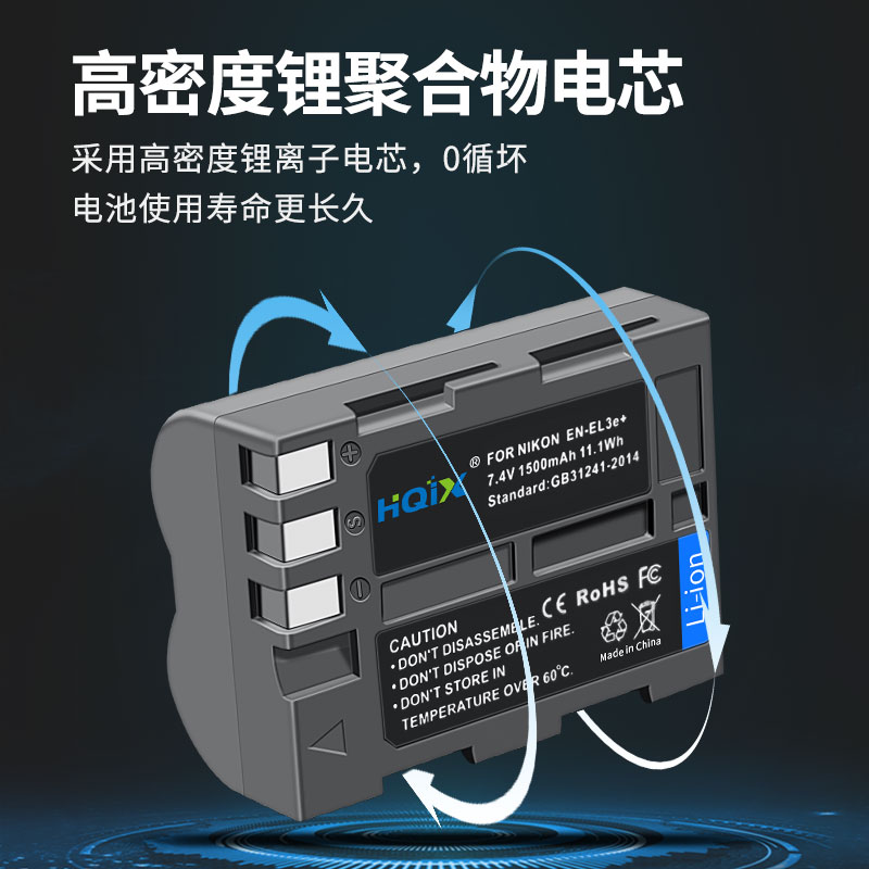 HQIX applies Nikon D100 D200 D300 D700 D700 EN-EL3E battery double charge charger