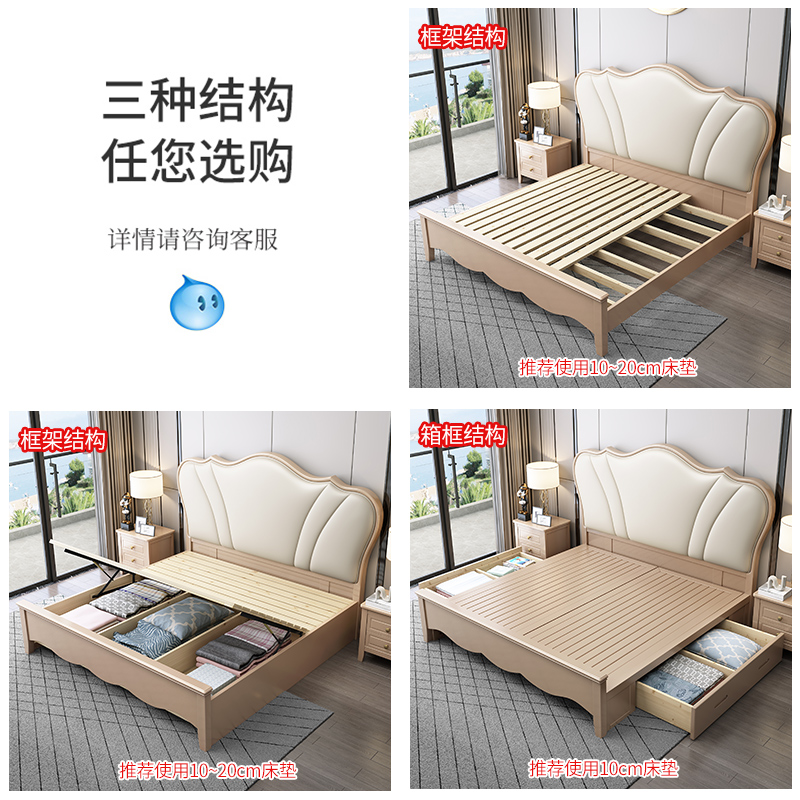 American light luxury full solid wood bed 18 meters single double bed modern minimalist 1 5 European master bedroom princess storage wedding