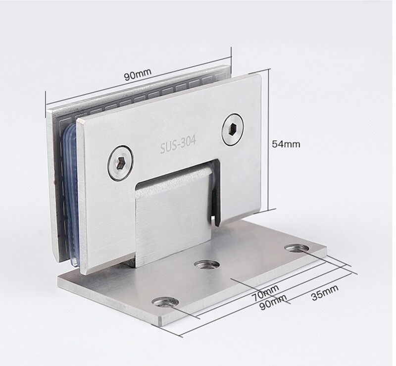 304 stainless steel single side bathroom clamp shower room hinge without frame glass door clip hinge bilateral 90-degree bright folding page