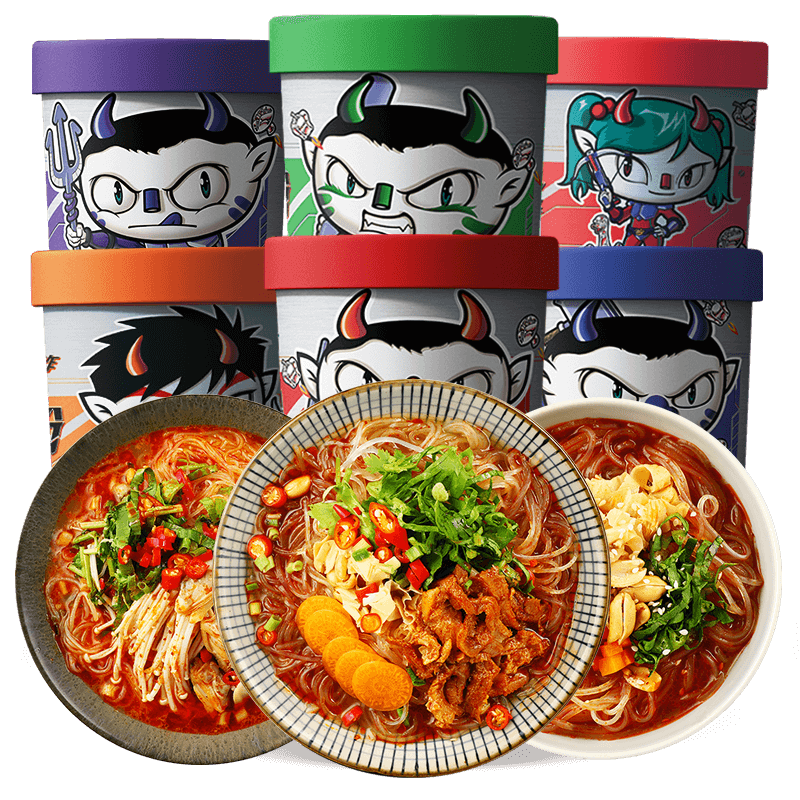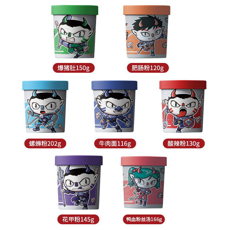 Carnivos sour spicy powder 6 barrels a whole box of spicy and spicy pop-belly pink rice pangolin powder Kanto cook quick food convenient for fans