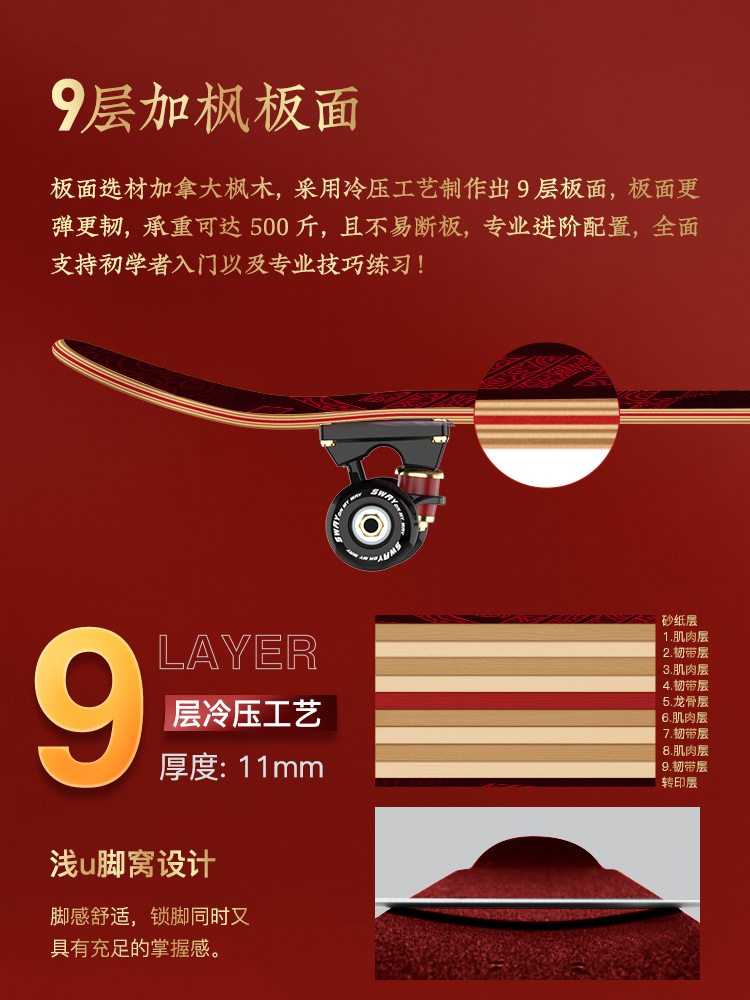 Sway 3108VA series teenagers adult professional beginner skateboard children with four-wheeled street brushing for beginners