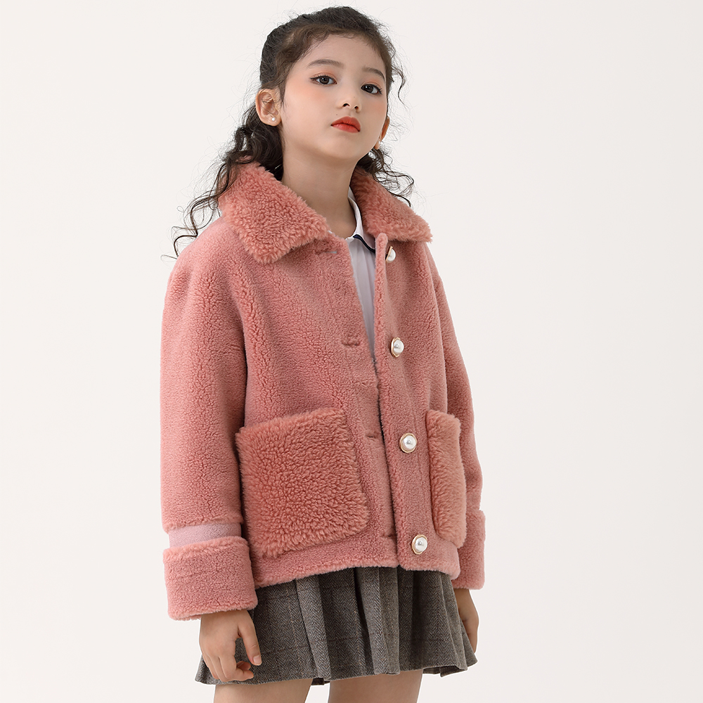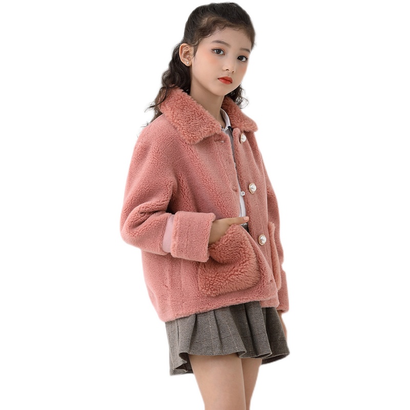 Girl Lamb Wool Jacket Boy Clothing 2021 New Fur Integrated Child Grain Suede Fleece Coat Foreign Pie