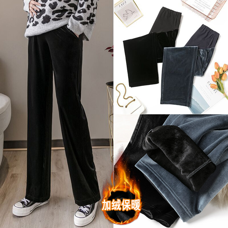 Small pregnant women's pants short pregnancy autumn and winter thickened gold velvet wide 150cm straight tube mopping 8 ankle-length pants