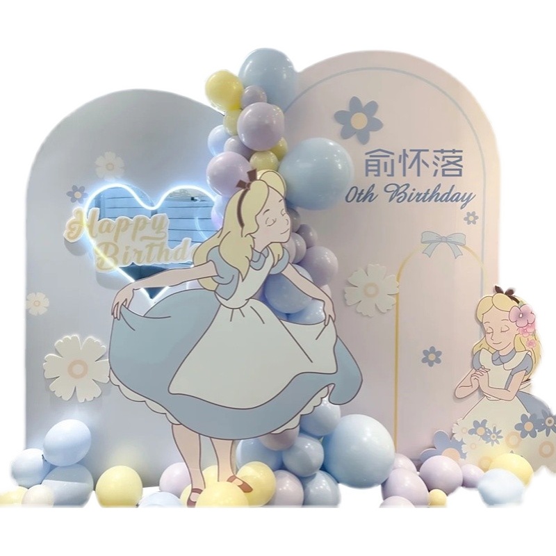 Alice's birthday banquet girl's full moon one-year-old birthday balloon KT board decoration hotel background wall hotel