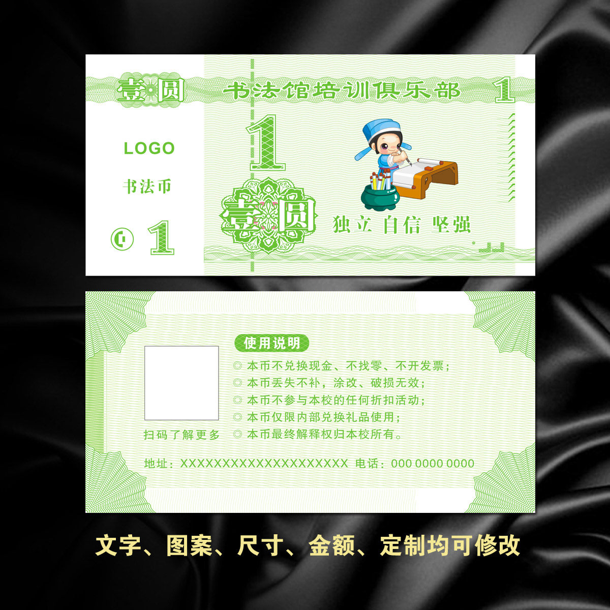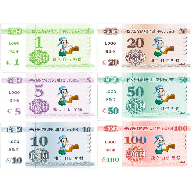 Customize calligraphy coins for children's reward coins points coin students card banknotes Training School Bancoins Study coins