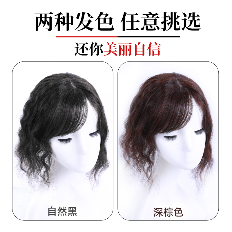 Wig piece female top cover white hair curly hair thin and invisible invisible fluffy natural hair replacement piece full real hair on the top of the head