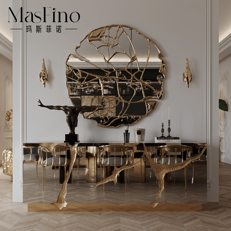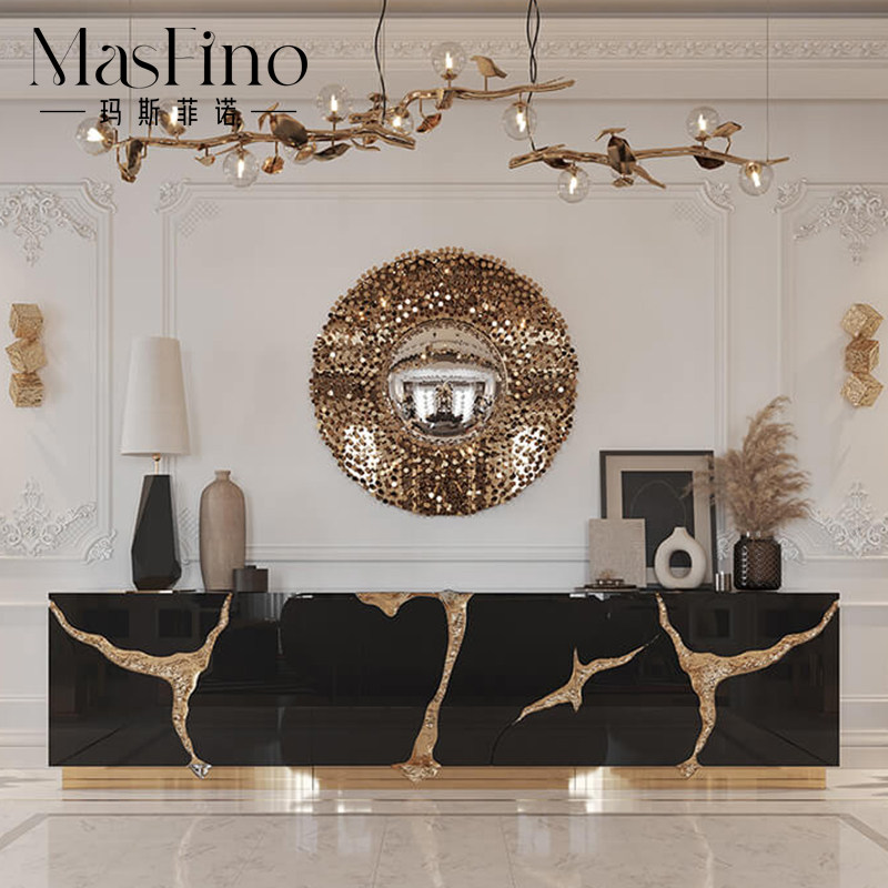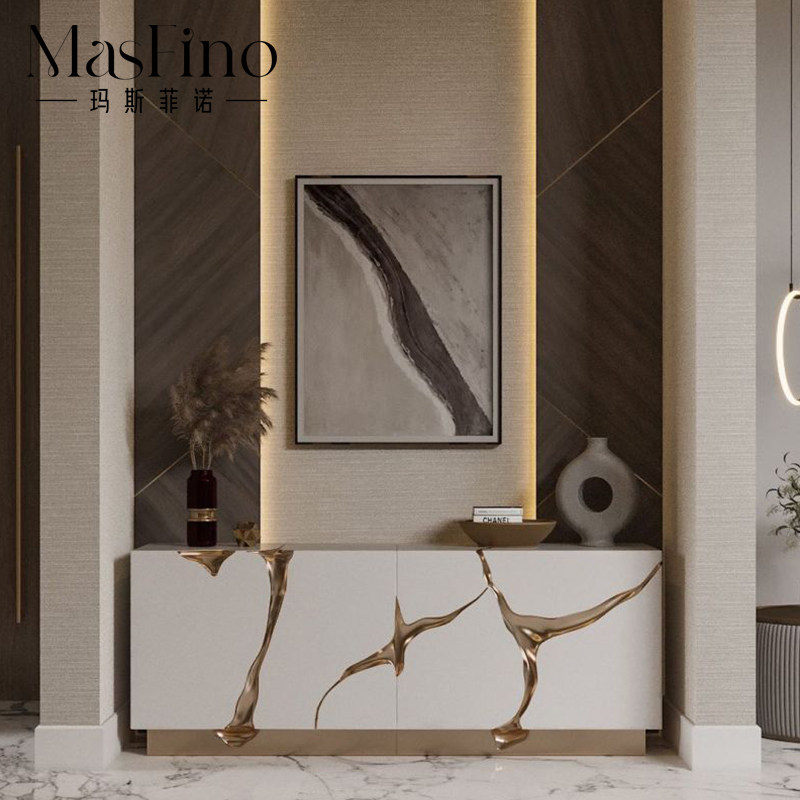Masfino Cabinet Art Stainless Steel Copper Water Breaking Collection Cabinet Modern Meal Cabinet Creative Decoration Cabinet Living Room