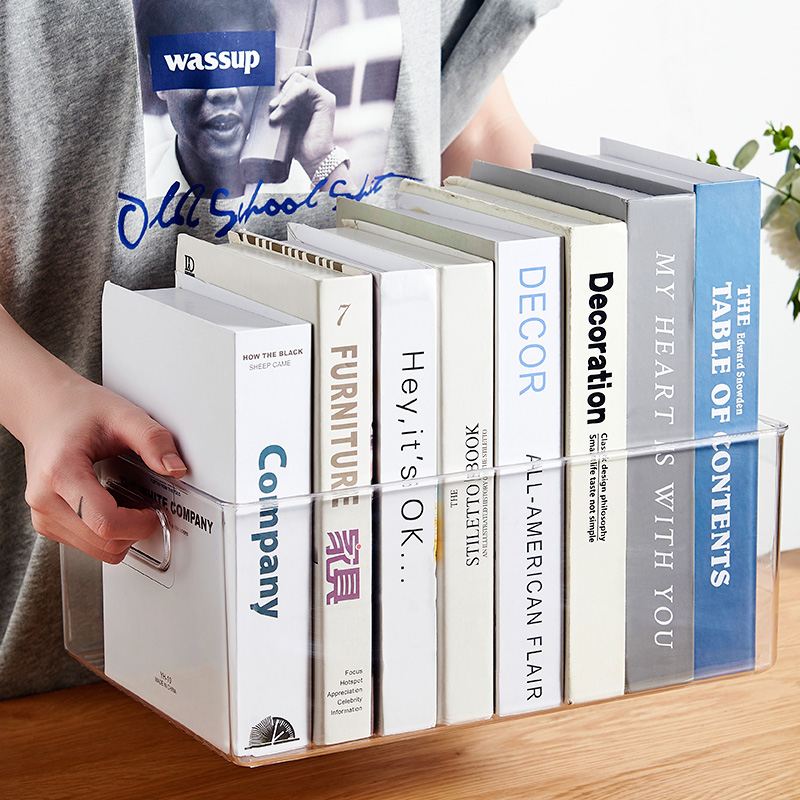 Book Containing Box Transparent Plastic Storage Finishing Box Toys Snacks High School Classroom Table Top books Book baskets