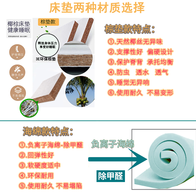 3E coconut palm cushion folding bed for the elderly adult bed plus high 45cm lunchtime bed Home Folding Guardrail Escort Bed
