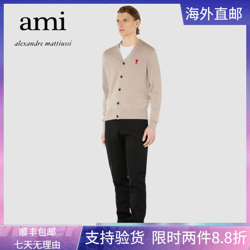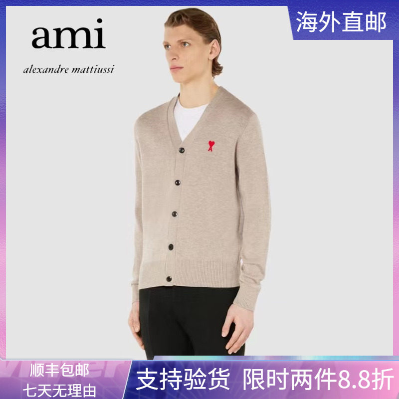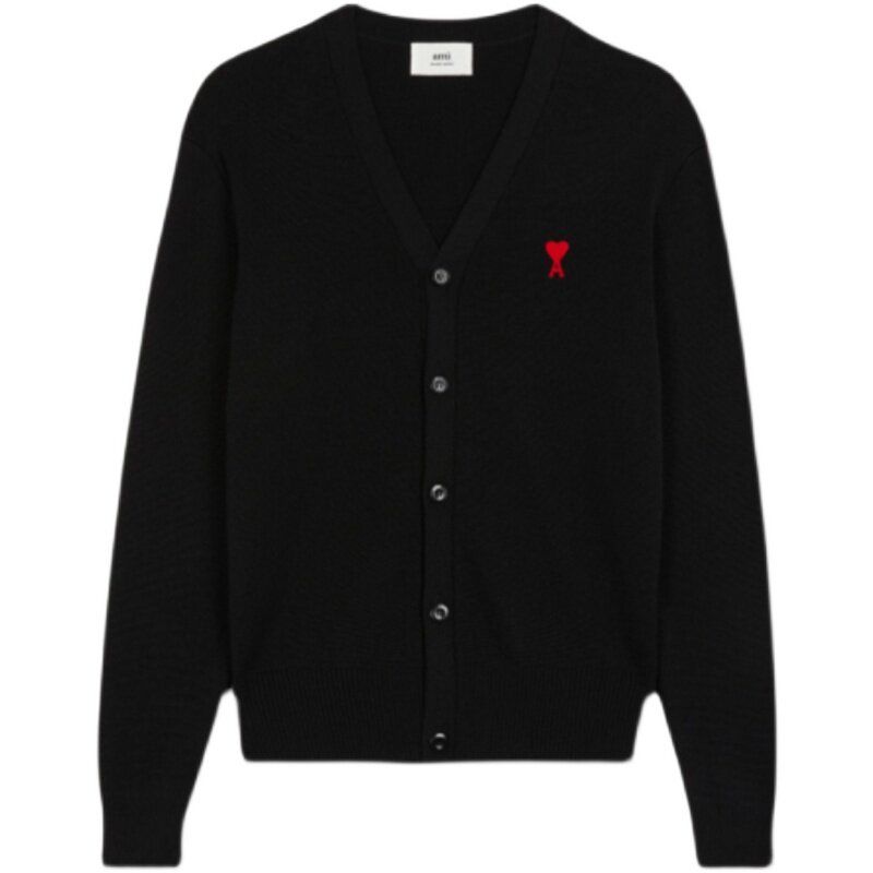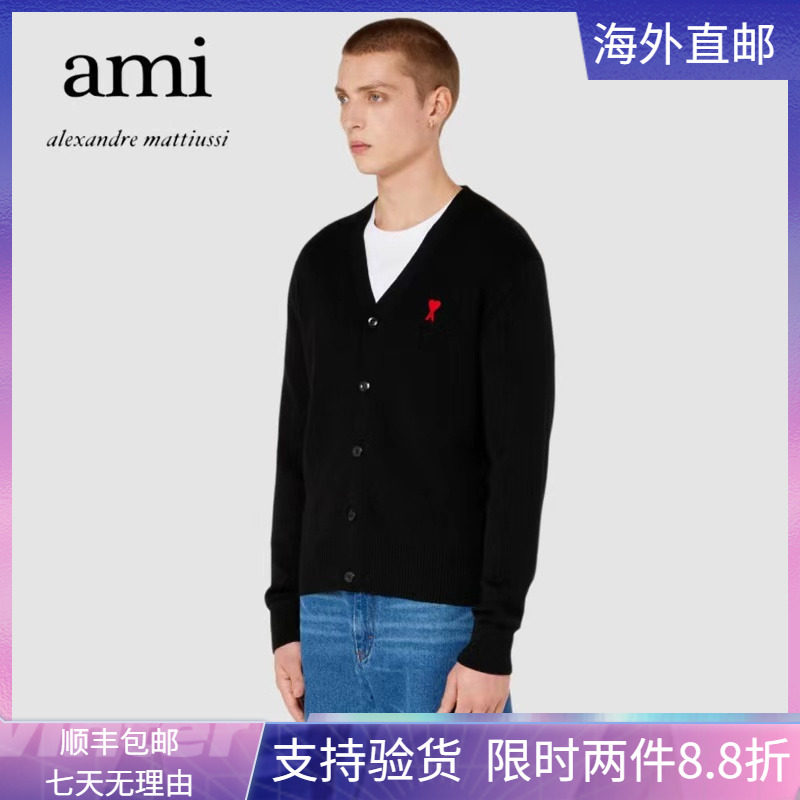 Ami Paris 21 autumn winter new V collar loose knit long sleeve male and female red loving cardiovert sweater jacket