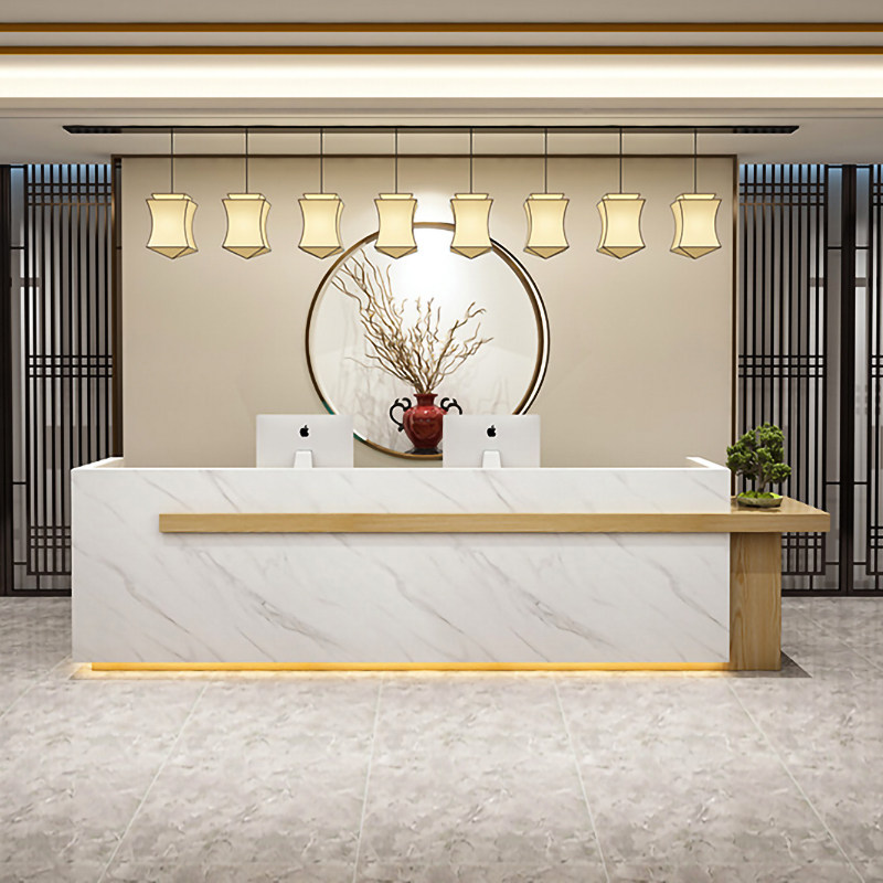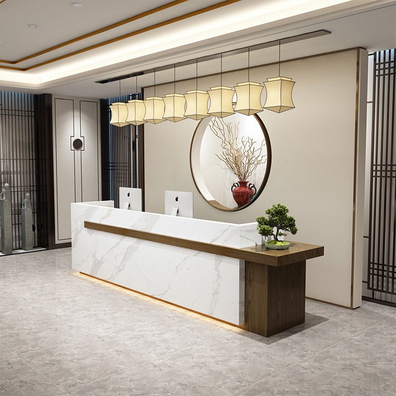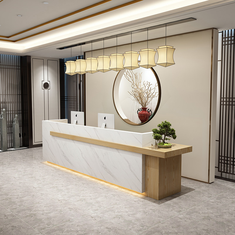 Front Desk Reception Desk Company New Chinese Imitation Marble Service Desk Tea Building Clubhouse Bar Counter Custom Baking Varnish Cashier Counter