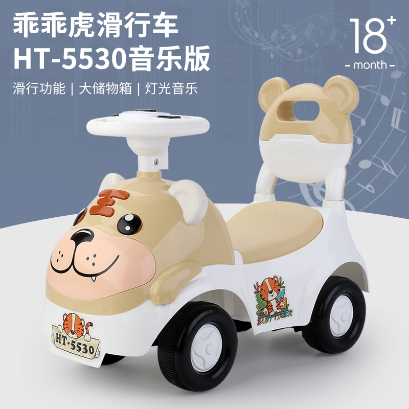 Child Cartoon Obediently Tiger Slide Wagon 1-5-year-old baby booster with four rounds of music light Swaying Toy Car