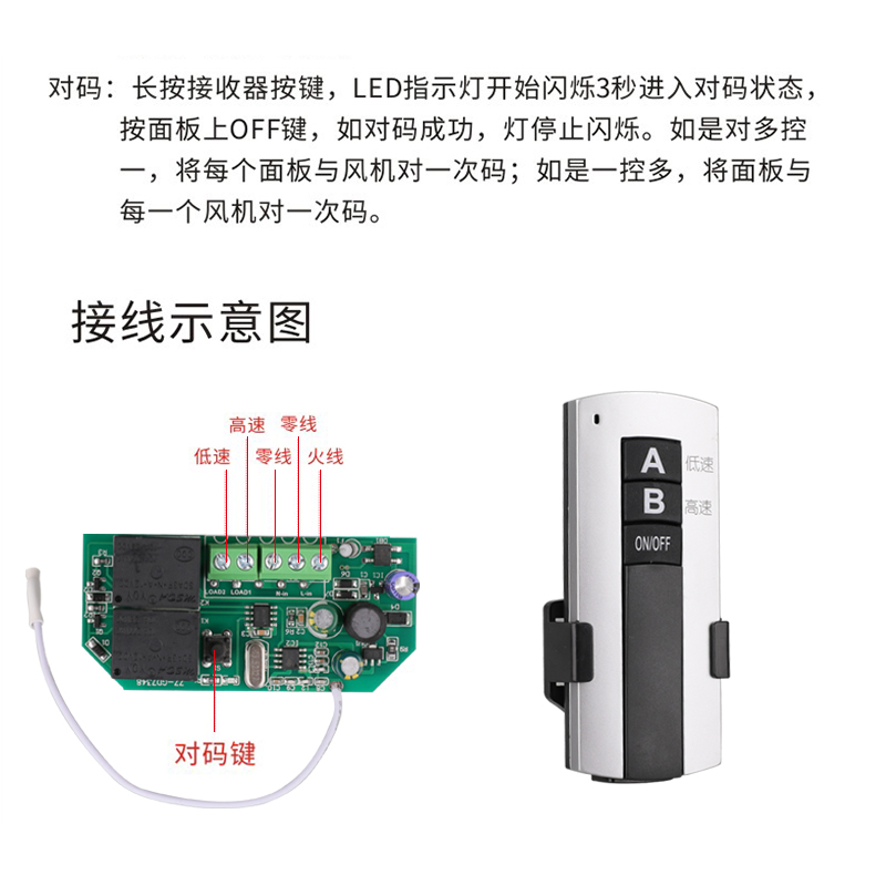 New Wind System Ventilator Double Speed Remote Control Switch Piping Ventilator Double Speed Free wiring wireless remote control switch button