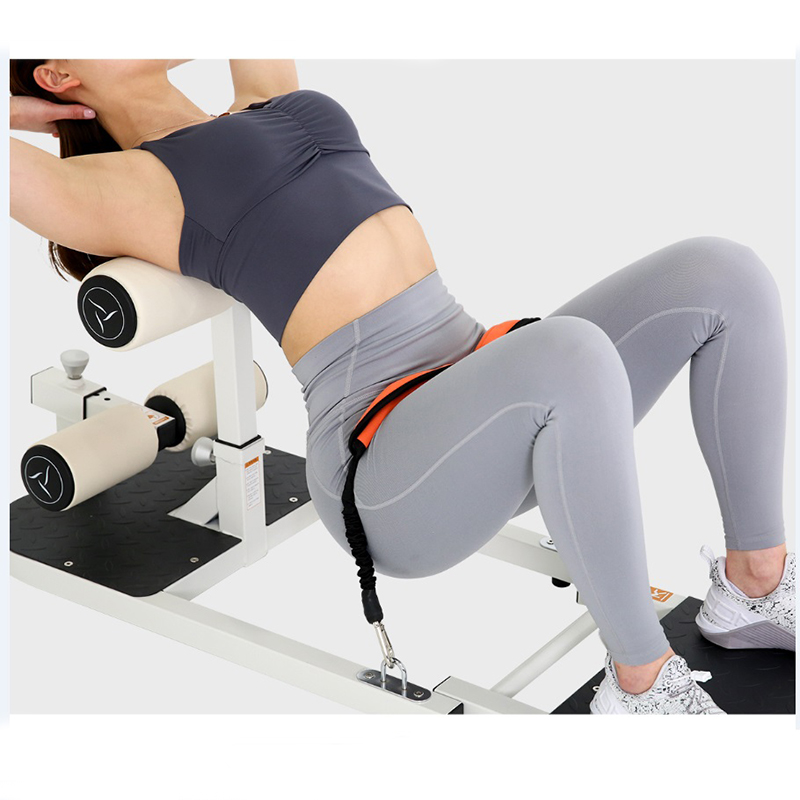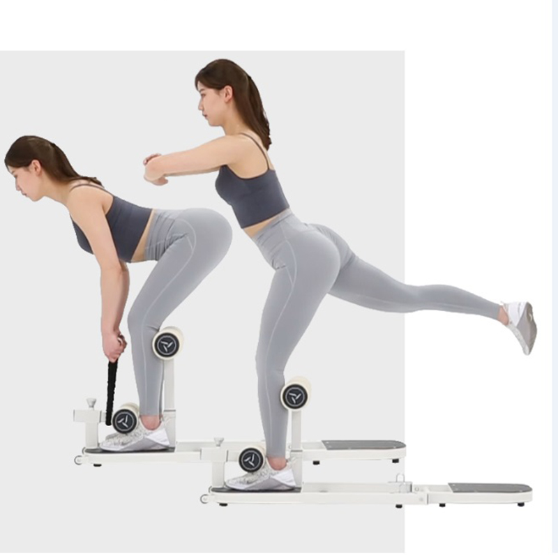 The girl squats down and squats down and squats up at home. The trainer lifts the buttocks and buttocks. The artifact is the core equipment for buttocks and legs.