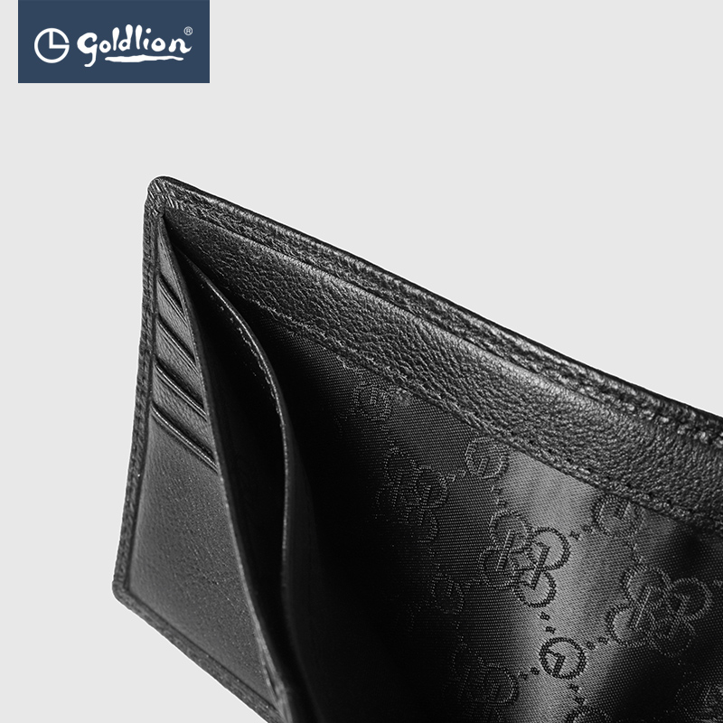 Ginley to men's wallet Head layer Bull Leather Short Cross Section Multi-Position Car Line Grain Noodle Big Logo Wallet