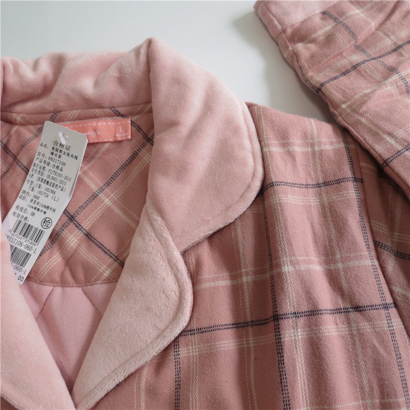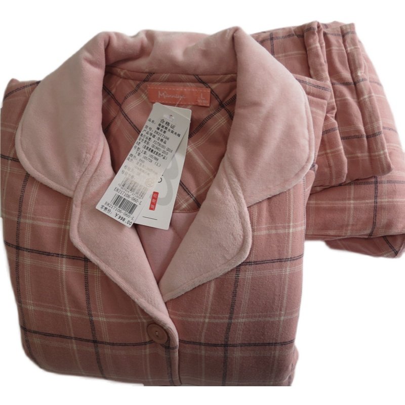 Maniya pajamas women's winter three-layer warm thick quilted pure cotton women's thickened home service plaid long-sleeved trousers
