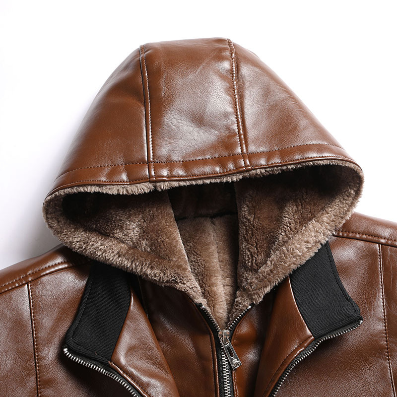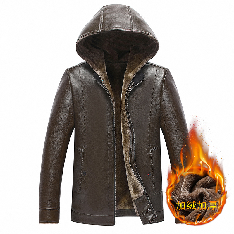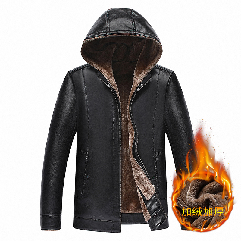 Men's even hat leather clothes 2021 autumn and winter new men's gush fur integrated PU leather clothes men's clothing thickened leather jacket