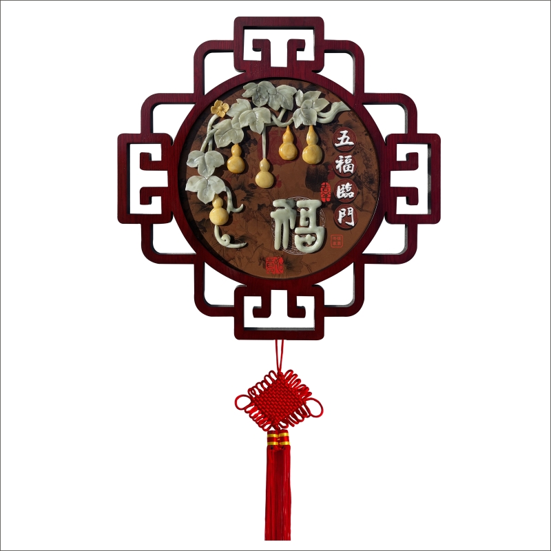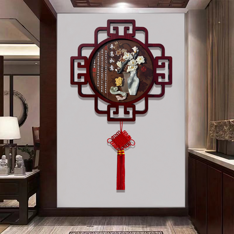 Fu characters China knot decoration large living room decoration painting New Chinese style entrance Xuanguan corridor jade sculpted relief painting