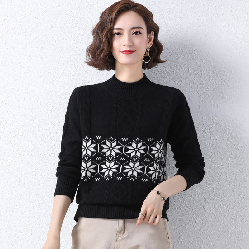 2021 New goat sweater women 100% pure wool shorts half high collar sweater women's autumn winter set head long sleeve sweater