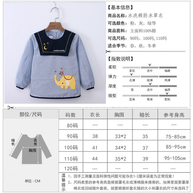Children's bibs long-sleeved men's and women's baby eating waterproof bib women's autumn and winter cotton eating bib baby anti-dirty reverse clothing